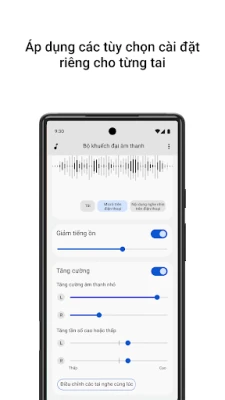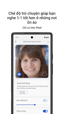 Đặc biệt, Bộ khuếch đại âm thanh cung cấp khả năng tùy chỉnh chưa từng có. Với Chế độ đàm thoại (khả dụng trên các thiết bị Pixel 3 trở lên), ứng dụng sẽ thông minh khuếch đại giọng nói của người đối diện, đồng thời giảm thiểu tiếng ồn nền, giúp bạn dễ dàng theo dõi mọi lời nói dù ở quán cà phê đông đúc hay buổi tiệc ồn ào. Dù là các cuộc họp, chương trình TV yêu thích hay bài giảng từ xa, bạn có thể điều chỉnh âm thanh theo ý muốn – tăng cường âm trầm, âm bổng, hoặc làm rõ những âm thanh nhỏ nhất, riêng biệt cho từng tai hoặc cả hai, tối ưu hóa trải nghiệm nghe của bạn. Đối với các nguồn âm thanh ở xa, việc kết nối tai nghe Bluetooth được khuyến nghị để đạt hiệu quả tốt nhất.