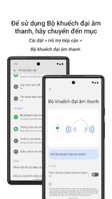 Bộ khuếch đại âm thanh được thiết kế để dễ dàng tiếp cận và sử dụng. Bạn có thể bật hoặc tắt ứng dụng một cách nhanh chóng thông qua nút hỗ trợ tiếp cận, các cử chỉ tiện lợi hoặc cài đặt nhanh trên thiết bị của mình. Để trải nghiệm những lợi ích này, thiết bị của bạn cần chạy hệ điều hành Android 8.1 trở lên và được kết nối với tai nghe. Google cam kết bảo vệ quyền riêng tư của bạn; Bộ khuếch đại âm thanh chỉ sử dụng micrô để xử lý và lọc âm thanh trong thời gian thực, không thu thập hay lưu trữ bất kỳ dữ liệu cá nhân nào của bạn.