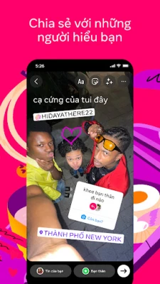 Dễ dàng chia sẻ cuộc sống của bạn theo cách riêng biệt. Cập nhật bạn bè về những diễn biến tức thì qua Tin và Ghi chú, những cập nhật nhanh chóng biến mất sau 24 giờ. Xây dựng không gian riêng tư hơn với nhóm chat và tính năng Bạn thân để chia sẻ những khoảnh khắc chân thực nhất. Biến những kỷ niệm về sự kiện hay chuyến đi thành những bài đăng đầy cảm hứng trên Bảng feed cá nhân. Đặc biệt, hãy thể hiện sự sáng tạo không giới hạn qua Reels, nơi bạn có thể biến bất kỳ khoảnh khắc nào thành thước phim ngắn sống động, cuốn hút bằng các mẫu độc đáo, âm nhạc thịnh hành, nhãn dán vui nhộn và bộ lọc nghệ thuật độc quyền.