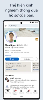 Với LinkedIn, bạn không đơn độc trên hành trình phát triển sự nghiệp. Nền tảng này kết nối bạn với một cộng đồng các chuyên gia, những nhà lãnh đạo tư tưởng và các công ty hàng đầu trong mọi lĩnh vực. Tham gia vào các cuộc thảo luận sôi nổi, chia sẻ kiến thức chuyên môn và cập nhật những tin tức kinh doanh, xu hướng ngành mới nhất. Tương tác với mạng lưới của bạn để mở rộng hiểu biết, tìm kiếm cố vấn và xây dựng những mối quan hệ có giá trị, tất cả đều góp phần định hình con đường sự nghiệp của bạn một cách chiến lược.