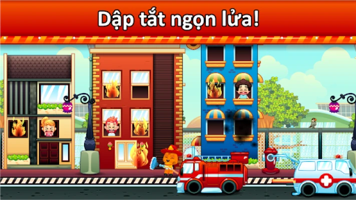 Khi tiếng chuông báo động vang lên, không có thời gian để chần chừ! Các bé sẽ nhanh chóng định vị đám cháy trên bản đồ, trang bị đầy đủ dụng cụ bảo hộ và lao đến hiện trường bằng một trong hai phương tiện hiện đại: chiếc xe cứu hỏa mạnh mẽ hoặc chiếc trực thăng linh hoạt, tất cả đều sẵn sàng phục vụ mà không cần mở khóa. Nhiệm vụ tối thượng là giải cứu các nạn nhân bị mắc kẹt, đặc biệt là những người có thể gặp khó khăn về hô hấp do khói. Hãy đưa họ an toàn lên xe cứu thương để được chăm sóc y tế kịp thời, trước khi tập trung vào việc khống chế ngọn lửa.