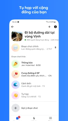 Với Messenger, dễ dàng kết nối với bạn bè, gia đình và cộng đồng trên toàn thế giới. Ứng dụng nhắn tin miễn phí này cho phép bạn khám phá sở thích và thể hiện cá tính một cách phong phú, vượt xa ngôn ngữ.