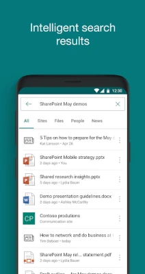Khám phá sức mạnh của khả năng tìm kiếm nâng cao, giúp bạn nhanh chóng định vị và khám phá bất kỳ nội dung nào cần thiết cho công việc. Tận hưởng một cái nhìn được cá nhân hóa về các trang nhóm, trang liên lạc và tin tức nội bộ, đảm bảo rằng bạn luôn được cập nhật những thông tin phù hợp nhất. Tương tác sâu hơn với mạng lưới đồng nghiệp bằng cách chỉ cần chạm để xem thông tin liên hệ chi tiết, những thành viên khác trong nhóm và các dự án mà họ đang tham gia, thúc đẩy một môi trường làm việc kết nối và hiểu biết hơn.