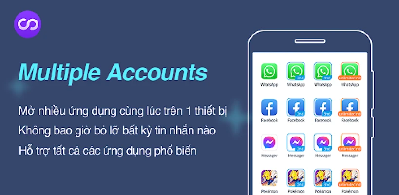Bạn đang tìm kiếm một giải pháp thông minh để quản lý đa dạng cuộc sống số của mình? Dù bạn cần chạy song song nhiều tài khoản mạng xã hội để phân tách công việc và cá nhân, hay muốn nhân đôi trải nghiệm và lợi thế trong các tựa game di động yêu thích, Multiple Accounts chính là lựa chọn tối ưu. Là một trong những ứng dụng nhân bản hàng đầu thị trường, Multiple Accounts đã trở thành người bạn đồng hành không thể thiếu của hàng triệu người dùng, giúp họ mở rộng khả năng tương tác trên các nền tảng như WhatsApp, Facebook, Instagram, hoặc chinh phục các game đình đám như FreeFire, Mobile Legends, LOL, Rise of Kingdoms một cách dễ dàng.